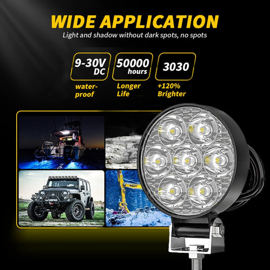 12/24V Round LED Work Light Spot Lamp Offroad Truck Tractor Boat SUV UTE 8000LM 6500K Driving Lamp Car Accessories
