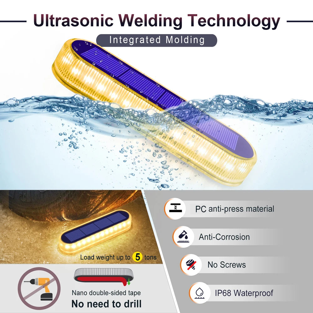 Easy Installation. NO NEED SCREWS. The solar lights outdoor for steps includes super-strong nano adhesive, can be easily installed anywhere without worrying about dropping or damaging the staircase.