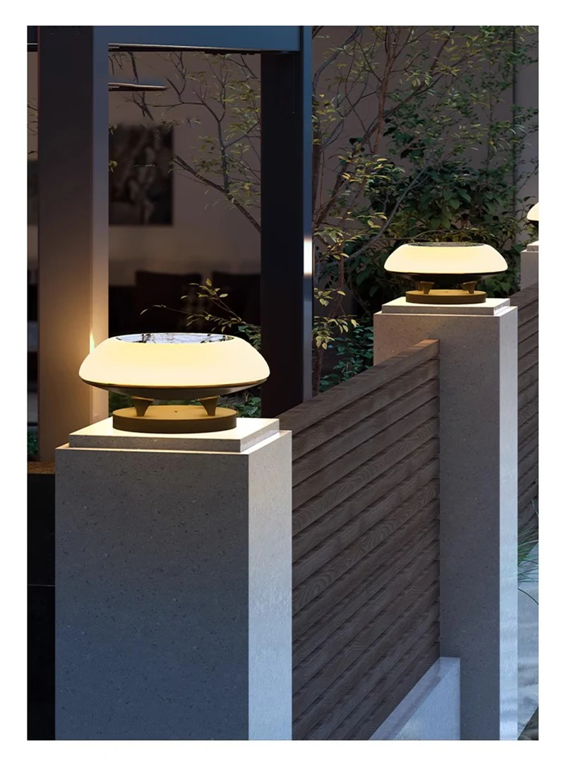 Solar Pillar Lights LED Wall Lamp Outdoor Waterproof Round Model Home Decor Gate Garden Lighting Decor Solar Energy Super Door