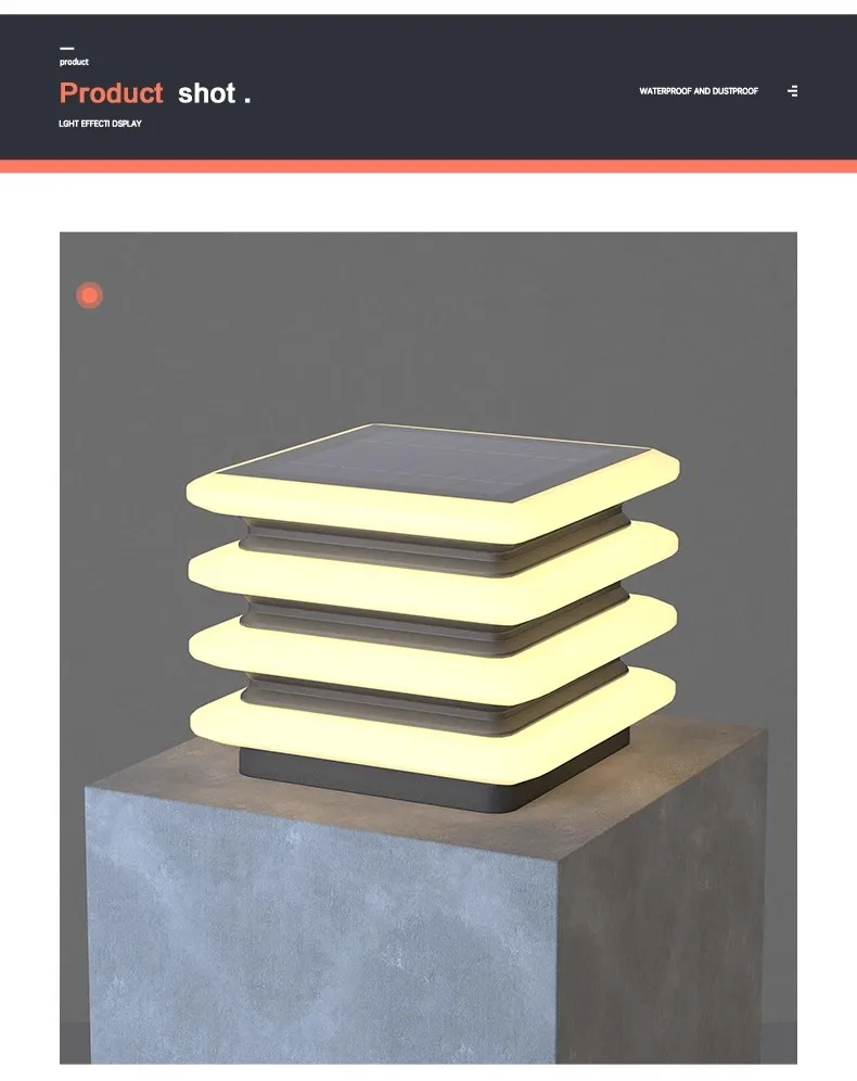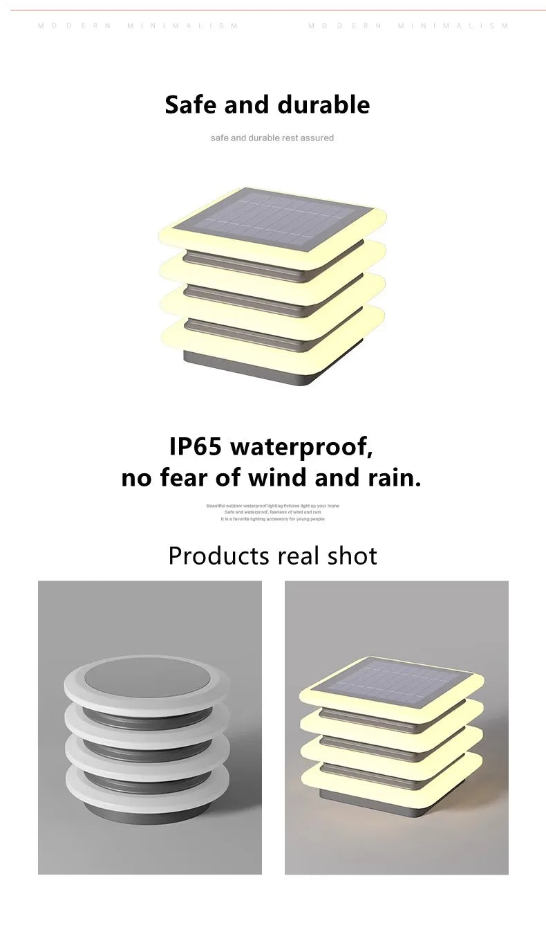 Waterproof Solar Wall Lawn Lamp Outdoor Solar Column Head Light Courtyard Door Pillar Lamp Outdoor Post Light Villa Door Lighting